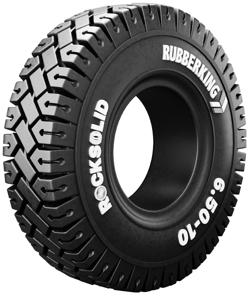Rubber King Resilient solid tyres are design for aggressive applications, suitable for both indoor and outdoor usages for long runs on surfaces varying from smooth concrete to abrasive floors to rough surfaces.