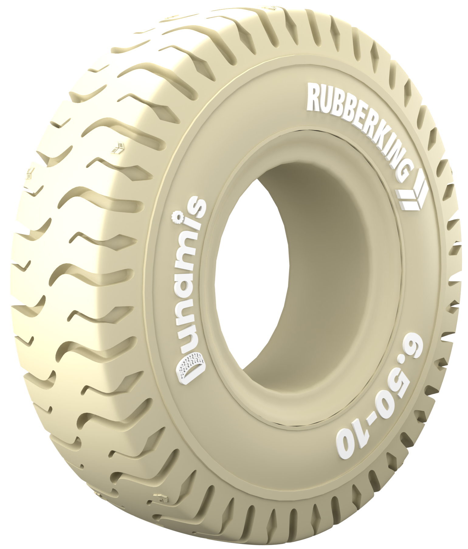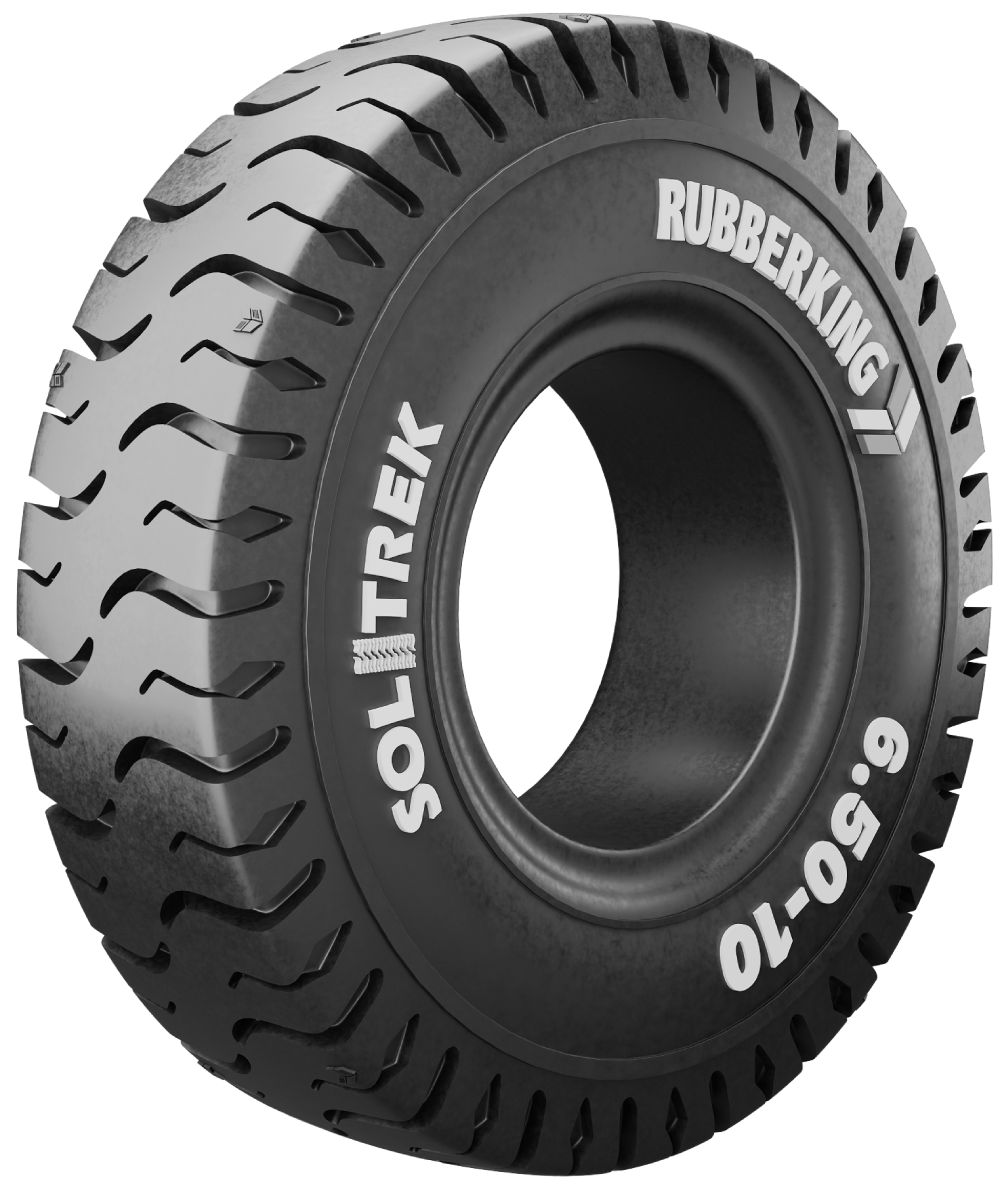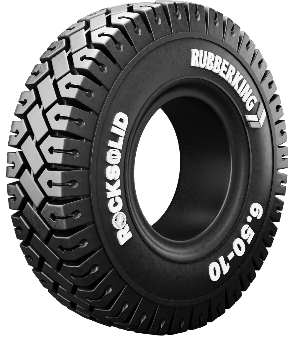 RUBBER KING Solid Tyres are designed for aggressive applications, suitable for both indoor and outdoor usage for long runs on surfaces varying from smooth concrete to abrasive floors to rough surfaces with holes/cracks.